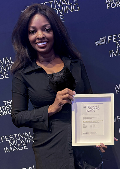 Independent filmmaker Carol Higgins is thrilled to announce that her short film Pointé de Couture has been awarded Best Animated Short (Student Category) at the 10th annual THE ARTISTS FORUM Festival of the Moving Image, which took place in New York City. The film screened at the prestigious Dolby Screening Room in NYC where Higgins was present to receive the award in person at the festival’s event along with a nomination for the 2025 Jurors Award, also presented by THE ARTISTS FORUM 2025 Festival of the Moving Image.